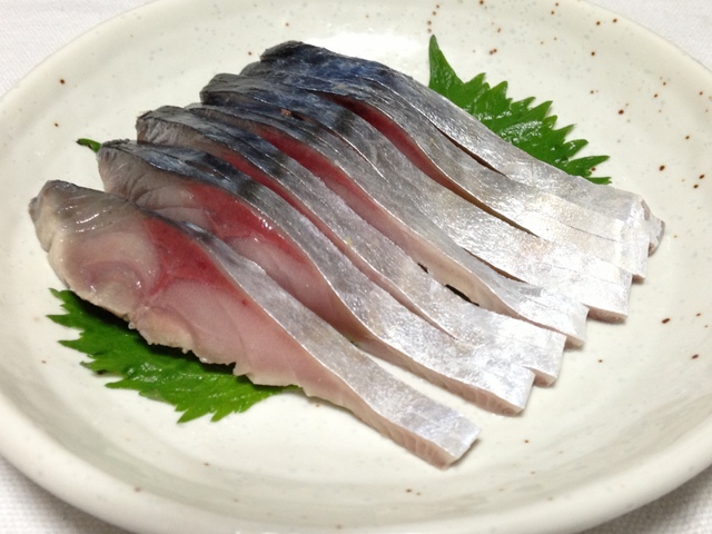 Shime Saba marinada, fatiada